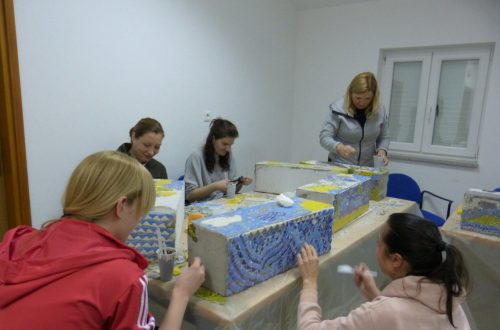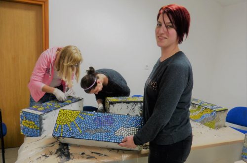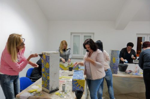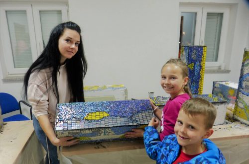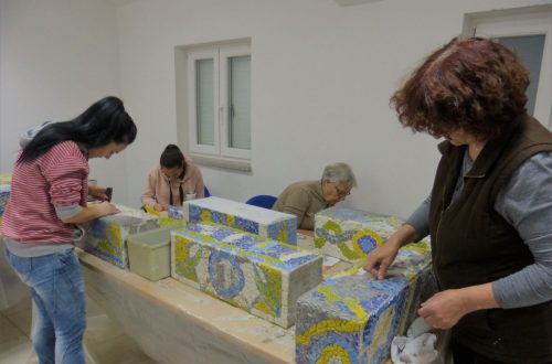 Zbog učestalih upita u periodu od 11. do 21. ožujka 2019. ponovljen je ciklus radionica Osnove izrade mozaika koji je prethodno realiziran u 2017. godini. U projekt je bila uključena 21 osoba koje su, podijeljene u 2 grupe, upoznate s tzv. direktnom tehnikom slaganja staklenog mozaika. Polaznici su najprije osmislili kompozicije i radili skice za svaku pojedinu plohu, a potom su rezali, razbijali i na blokove siporexa slagali i lijepili komadiće stakla te na koncu fugirali izrađene prikaze. Ploče su zatim fizički spojene na način da tvore tri kvadra za sjedenje koja će nakon izložbe biti postavljena u javnom prostoru te je zapravo riječ o svojevrsnom kreativnom doprinosu zajednici.